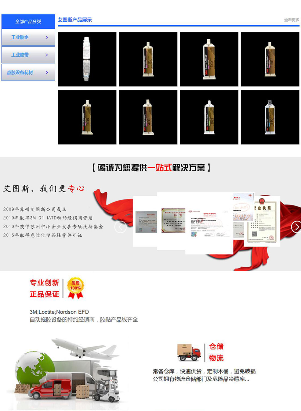 苏州艾图斯科技有限公司主要代理3M胶水,胶带系列,点胶机,非标设备及点胶耗材。公司既有专业高素质的销售队伍,又有多年从事胶粘剂使用、点胶机业务的人才,和完备的胶黏产品线,为公司高速发展奠定了雄厚的基础。 公司成立至今,秉承为客户提供专业创新,系统的粘结解决方案之理念,在工业制造,电子组装,机械加工等领域有诸多建树。在销售的过程中,倡导客户购买的不仅仅是一支胶水,更重要的是能为客户提供一整套的点胶解决方案。
