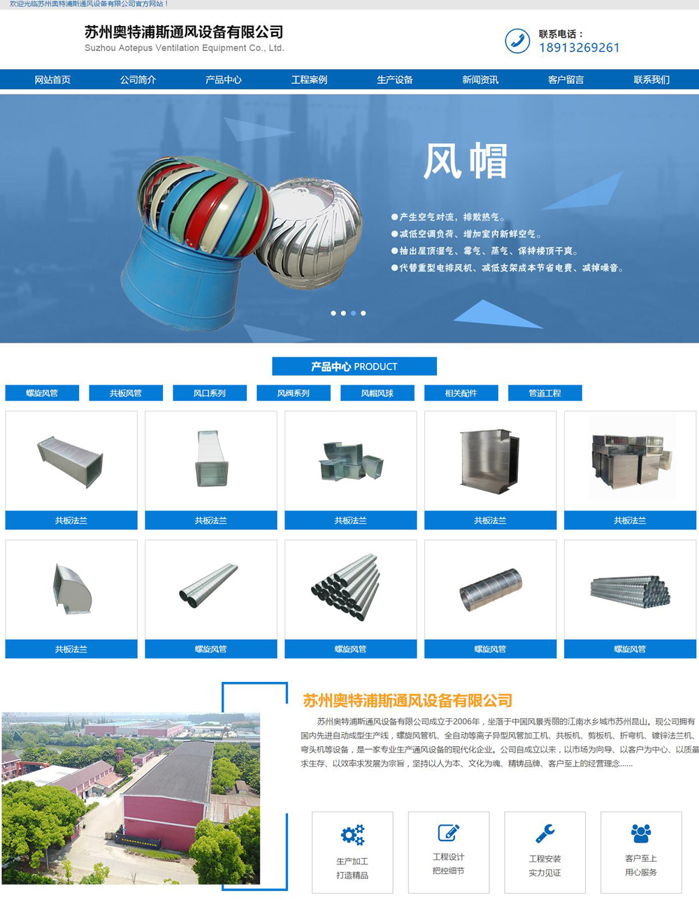 苏州奥特浦斯通风设备有限公司成立于2006年,坐落于中国风景秀丽的江南水乡城市苏州昆山。现公司拥有国内先进自动成型生产线,螺旋风管机、全自动等离子异型风管加工机、共板机、剪板机、折弯机、镀锌法兰机、弯头机等设备,是一家专业生产通风设备的现代化企业。